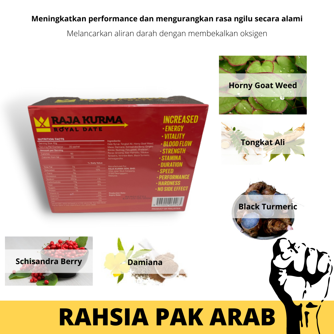 Rahsia Pak Arab terbongkar dengan mengkonsumsi Raja Kurma. Kami telah formulasikan bahan-bahan kandungan di dalam Raja Kurma yang datang dari pengkonsumsian Pak Arab tersebut.